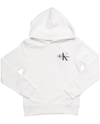 Calvin Klein Jeans Junior Kid’s Unisex Small Monogram Hoodie – Bright White