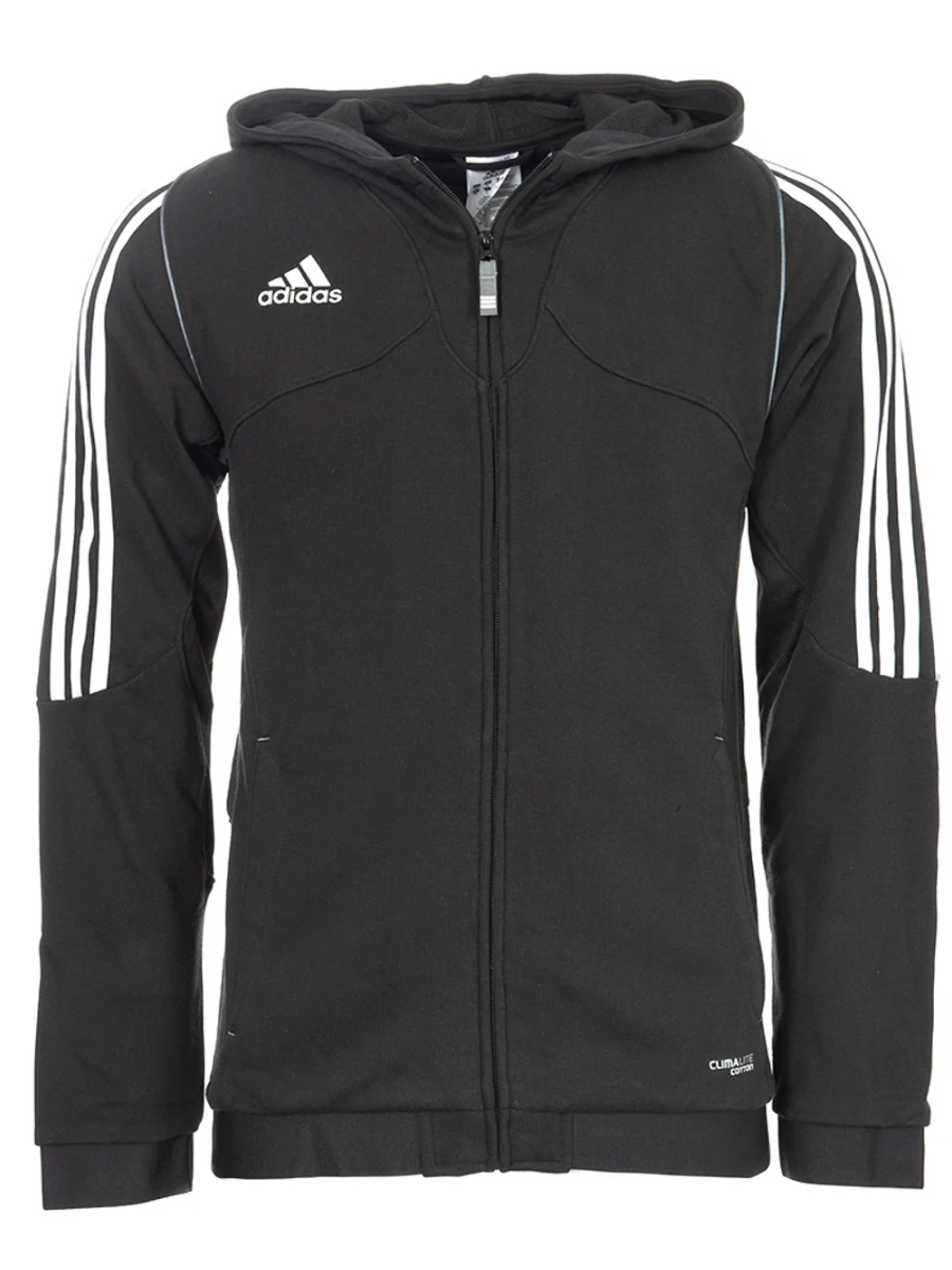Men’s hoodie from the ADIDAS brand is a sweatshirt with a zipper made of cotton fabric made using ClimaLite Cotton technology. ClimaLite Cotton is a lightweight, soft, breathable fabric that absorbs excess moisture and wicks it away, leaving your skin dry. This technology is used in models where the percentage of cotton is higher. The sweatshirt is fastened with a zipper along the entire length, has elastic cuffs on the sleeves, three vertical parallel stripes characteristic of the company on the sleeves and shoulders, and a logo on the right chest. There are mesh inserts on the sides for better ventilation. Designed for both training and everyday wear.