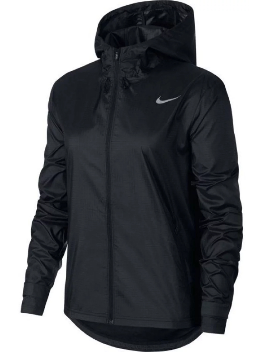 The Nike Essential Running Jacket helps you keep running when wet weather arrives. Water-repellent fabric combines with hooded coverage to help you stay dry for miles.