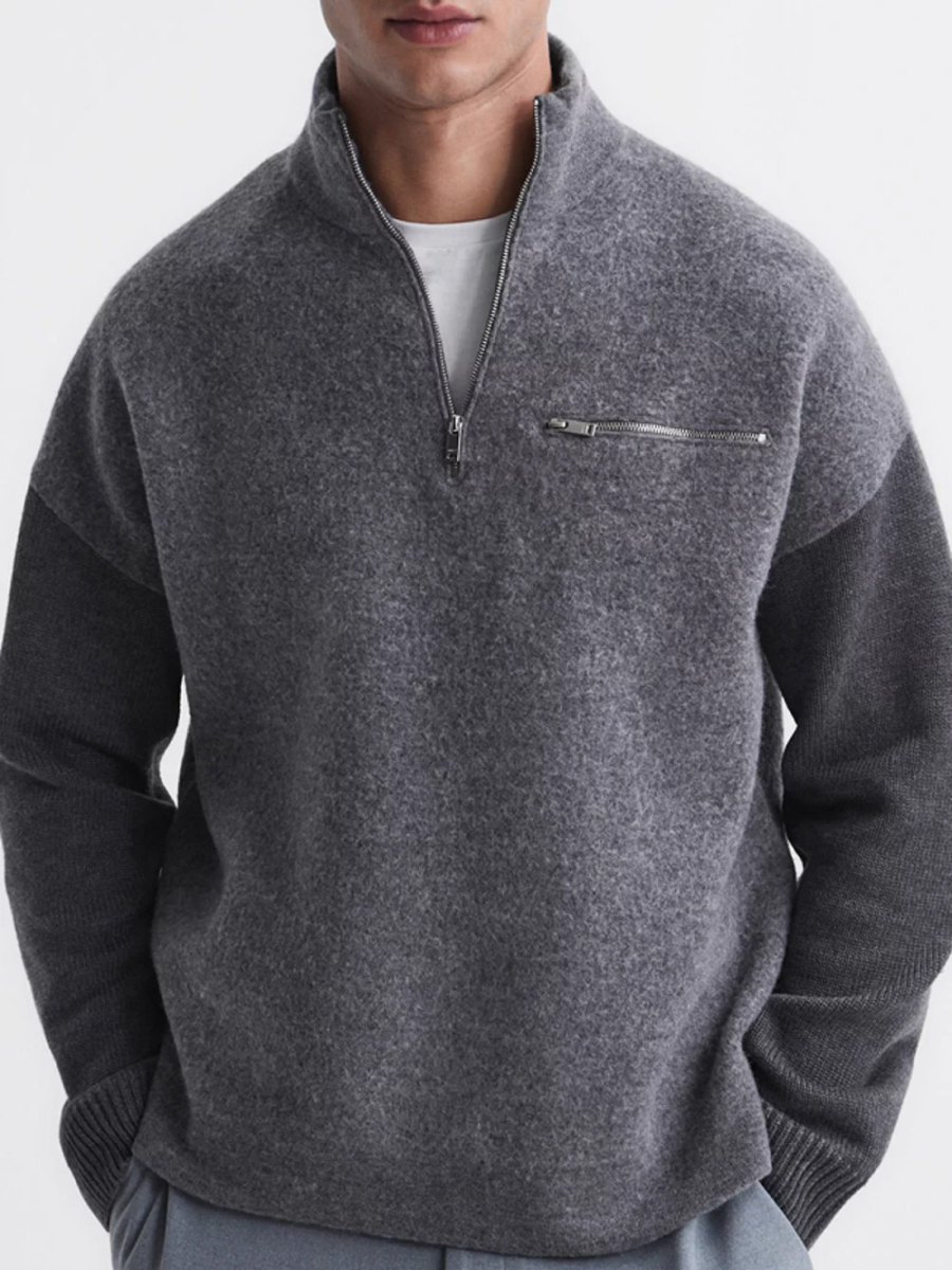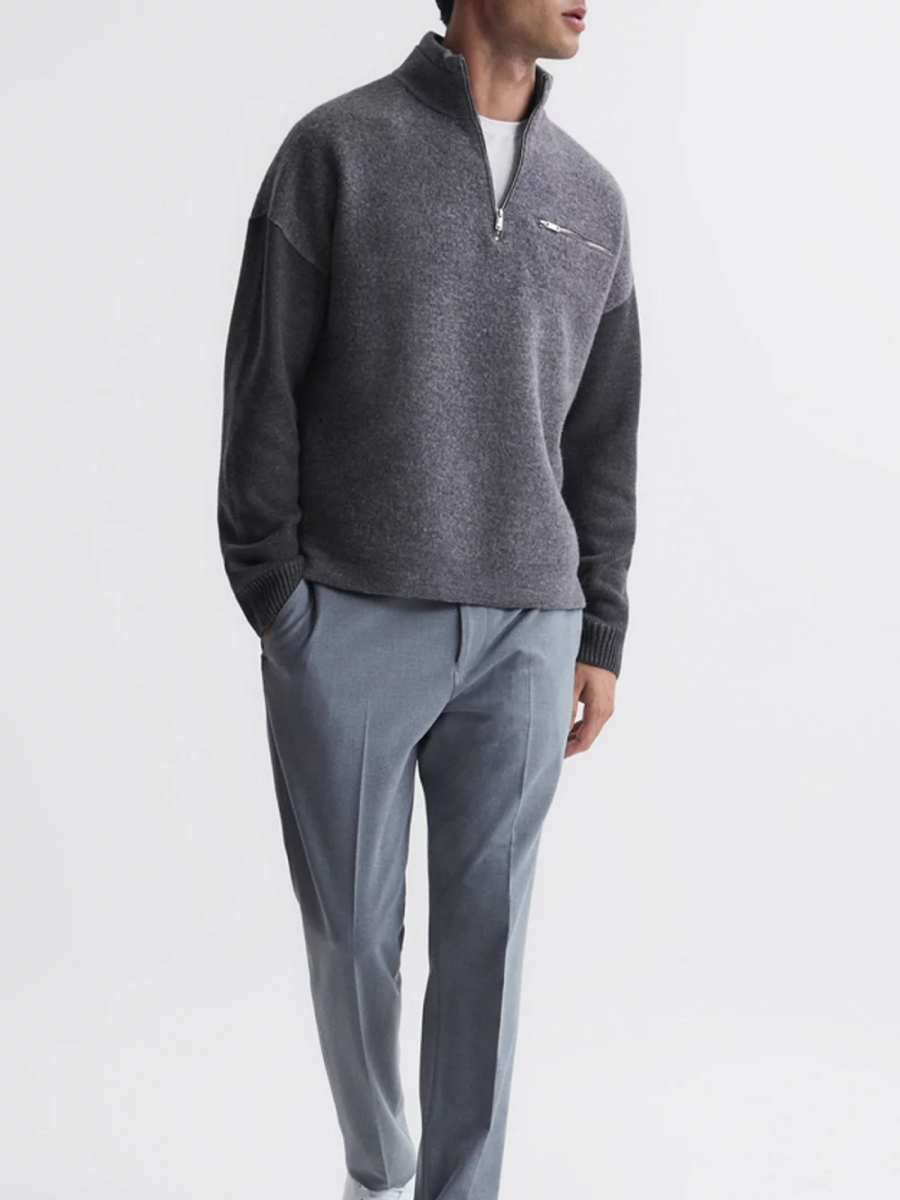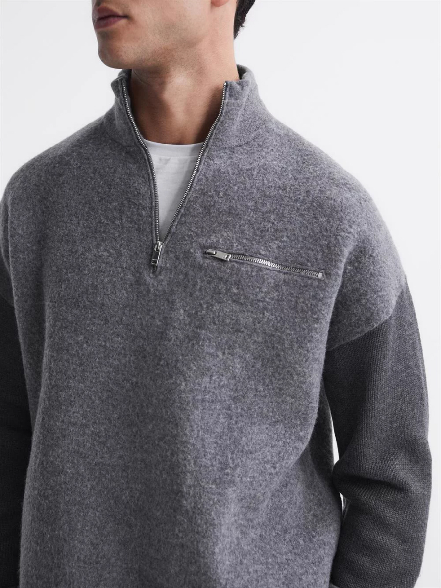 Reiss Men’s Plaza Long Sleeves Half Zip Boiled Sweater – Grey